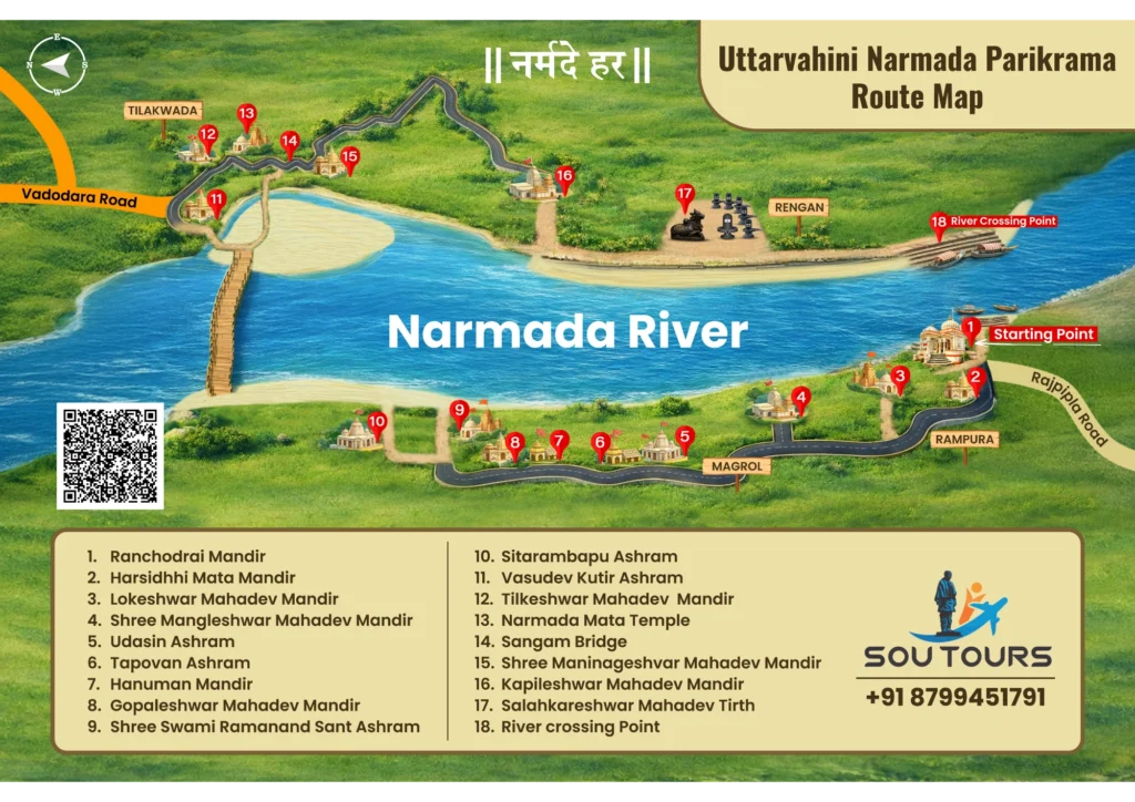 Begin your divine journey of Narmada Parikrama with SOU Tours — where devotion, comfort, and perfectly organized travel come together for a truly spiritual experience.